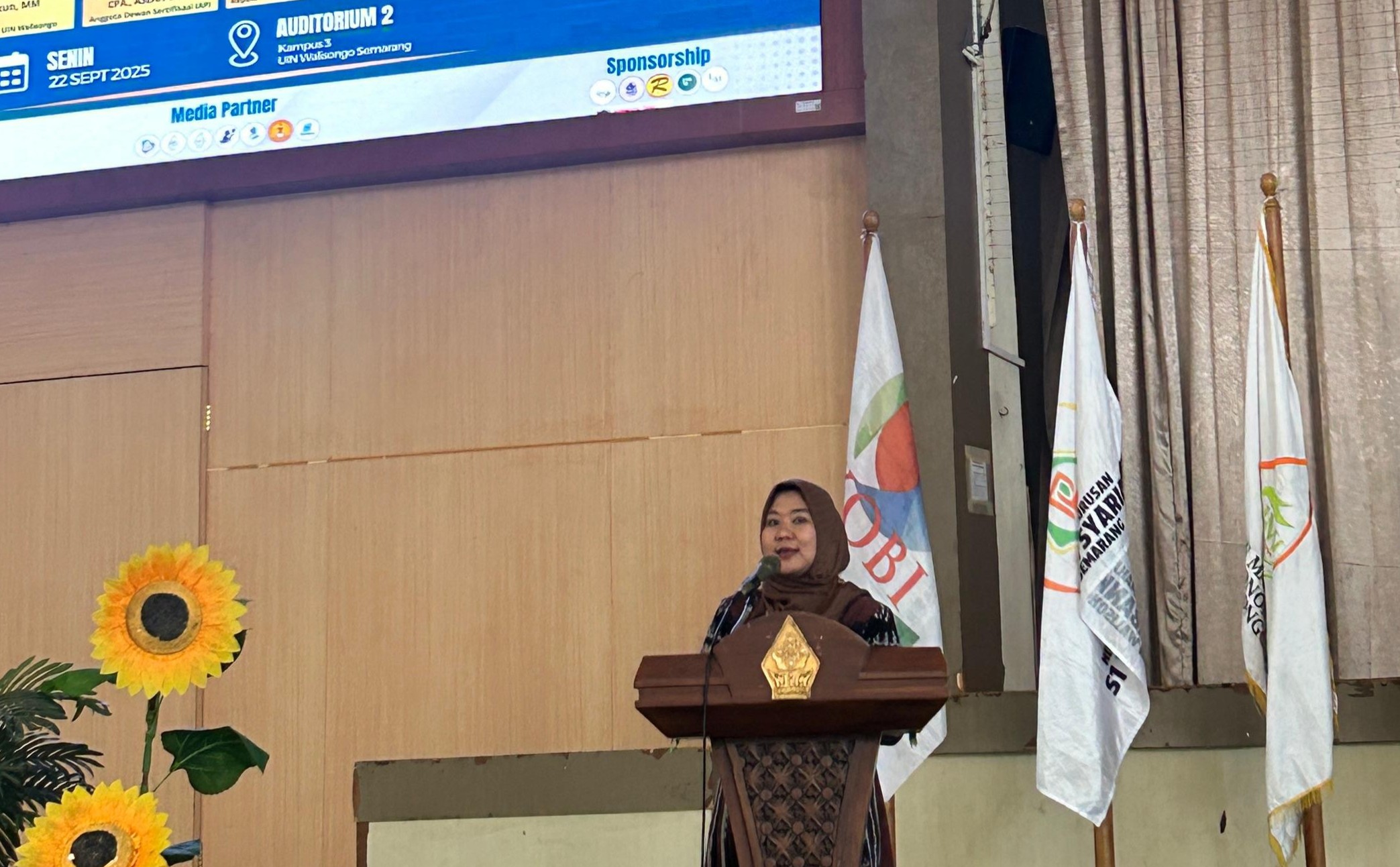 Ketua Prodi S1 Akuntansi Fakultas Ekonomi dan Bisnis (FEB) Unissula Provita Wijayanti SE MSi Ak CA AWP IFP PhD menjadi narasumber seminar nasional di UIN Walisongo Semarang. Dalam acara diselenggarakan oleh Himpunan Mahasiswa Jurusan (HMJ) Akuntansi Syariah UIN Walisongo tersebut Provita membahas peran akuntan profesional, Senin (22/9/2025).