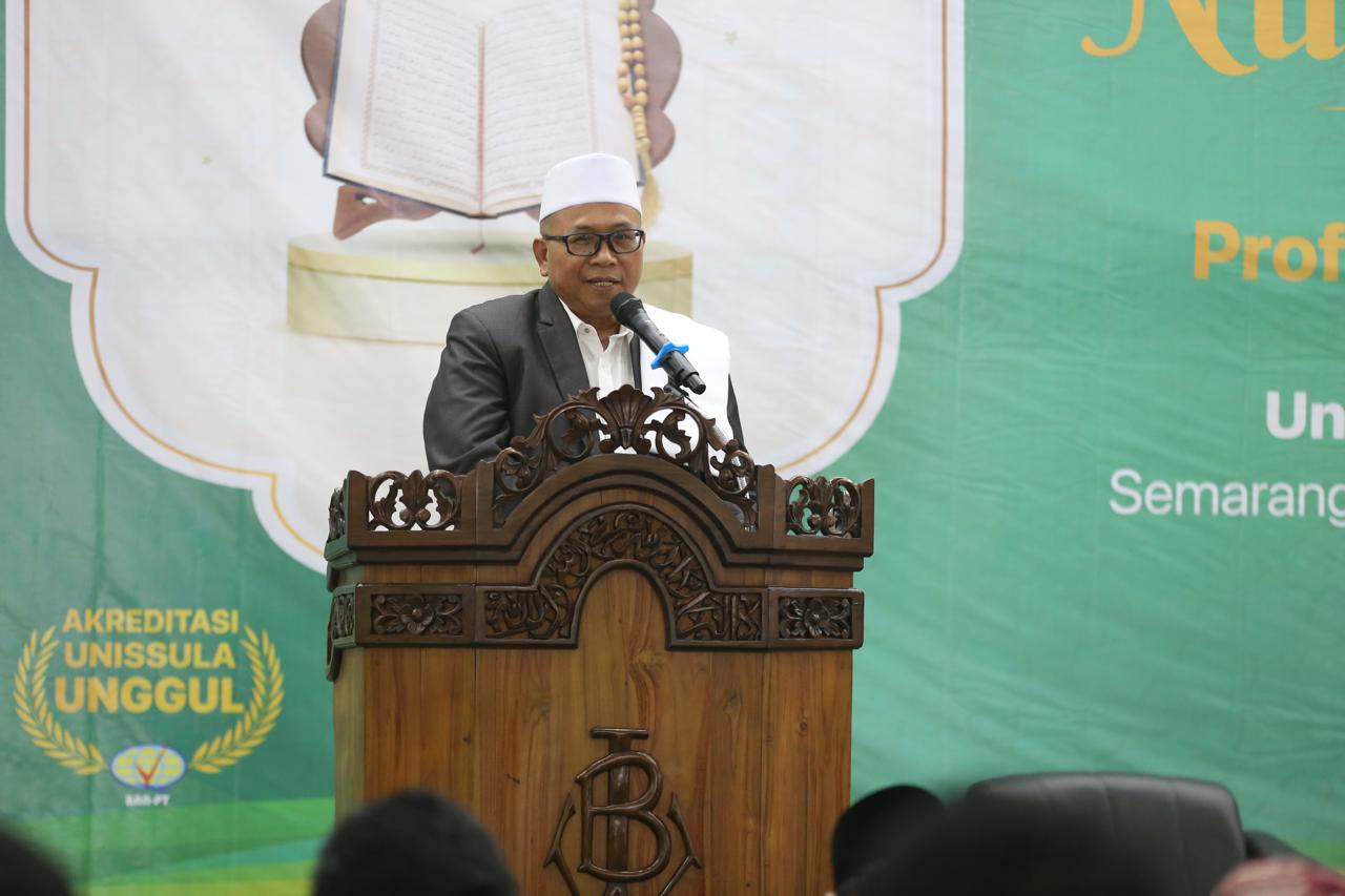 Unissula memperingati nuzulul Qur’an di masjid Abu Bakar Assegaf, Kamis (5/3/2026). Rektor Unissula Prof Dr Gunarto SH MH berharap dengan memperingati nuzulul Qur’an akan semakin menambah rasa cinta pada Al Qur’an. “Amalan yang paling penting adalah kita membaca Al Qur’an dan melaksanakannya dalam kehidupan sehari-hari, dalam kehidupan di Unissula, dan masyarakat,” ungkapnya.